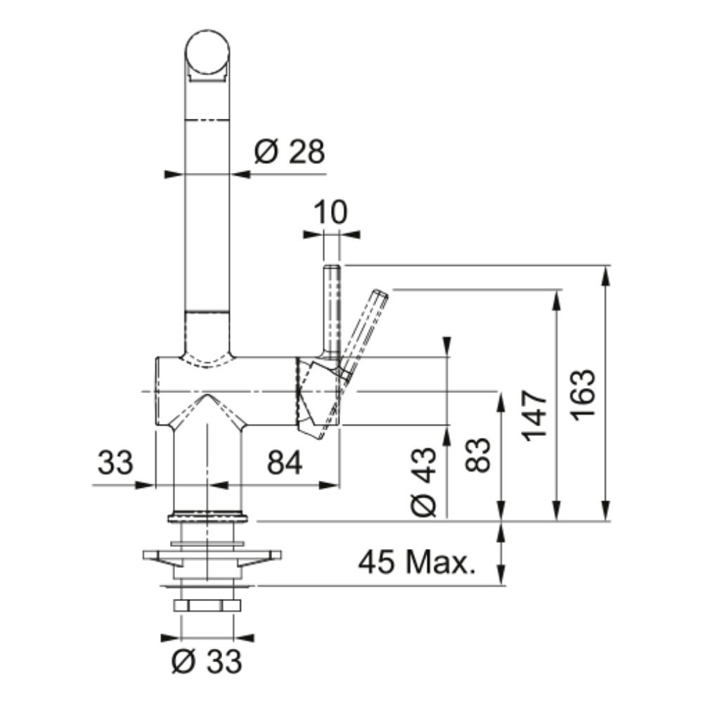 • En fazla 45 mm (4,5 cm) kalınlığında tezgaha/evyeye monte edilebilir