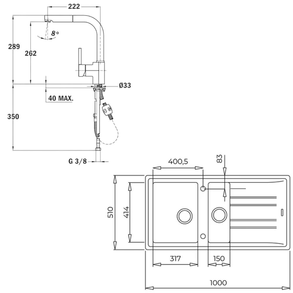 • Beyaz renk, 1,5 hazne, damlalıklı, çift yönlü, tezgah üstü, 100x51 cm