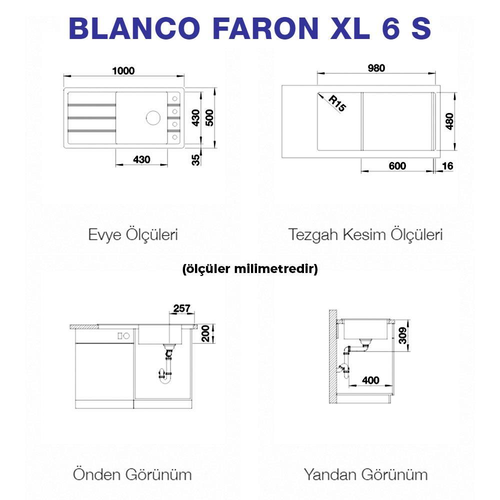 Blanco FARON XL 6 S Granit Evye, Beyaz, 1 Hazne, Damlalıklı