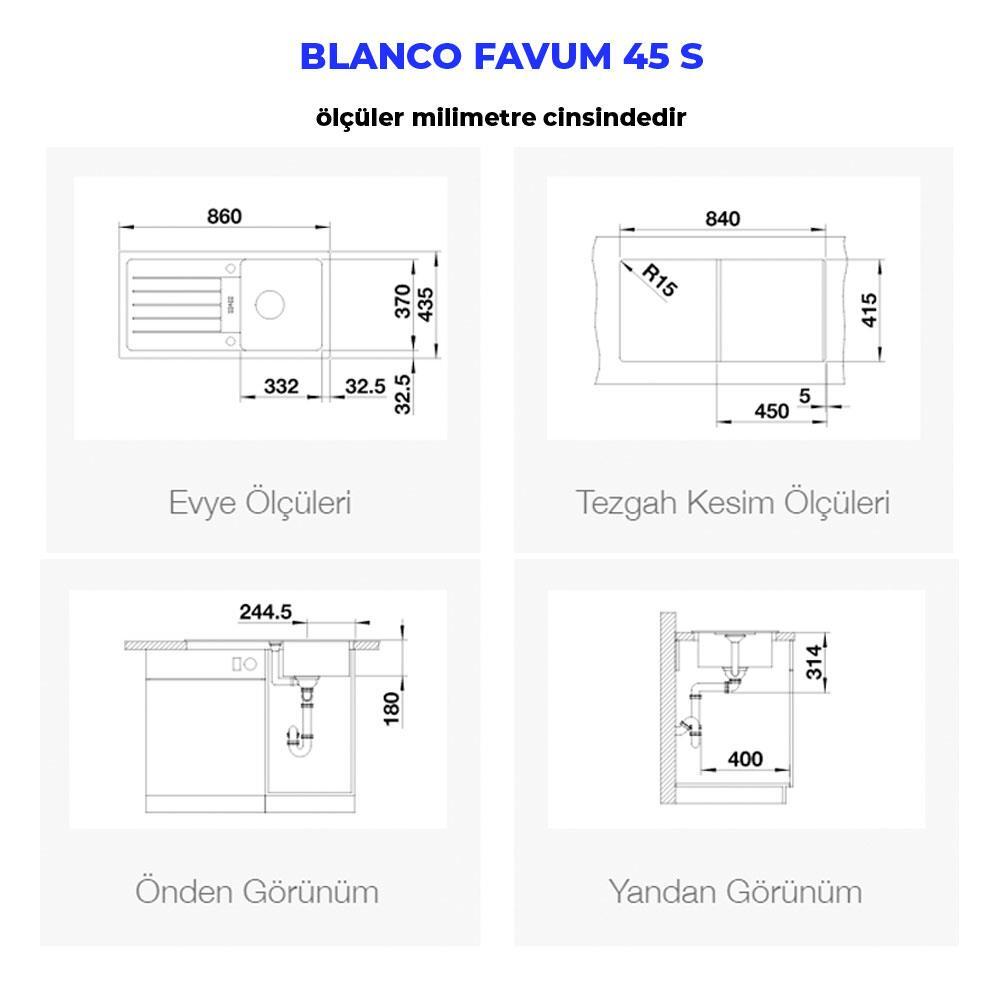 Blanco FAVUM 45 S Granit Evye, Siyah, 1 hazne, Damlalıklı