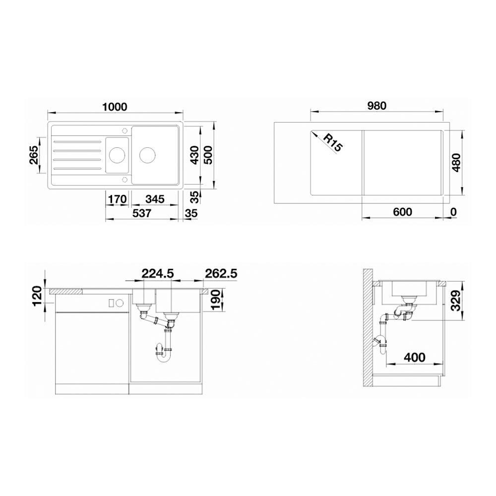 Blanco Legra 6S Granit Evye, 1,5 hazne, Siyah, Tezgah üstü