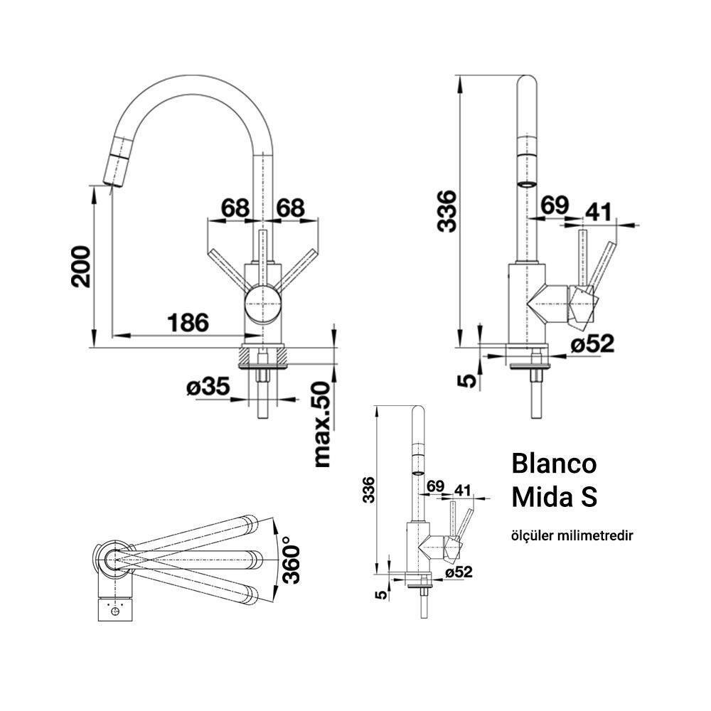 Blanco Mida-S Mutfak Armatürü, Antrasit