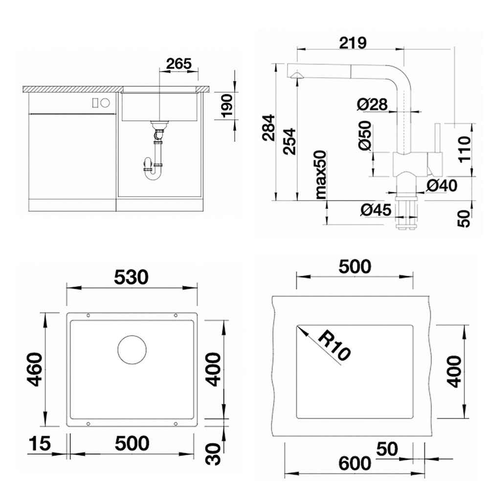 Uzunluk: 50, Genişlik: 40 cm, Köşeler: R10 radüs