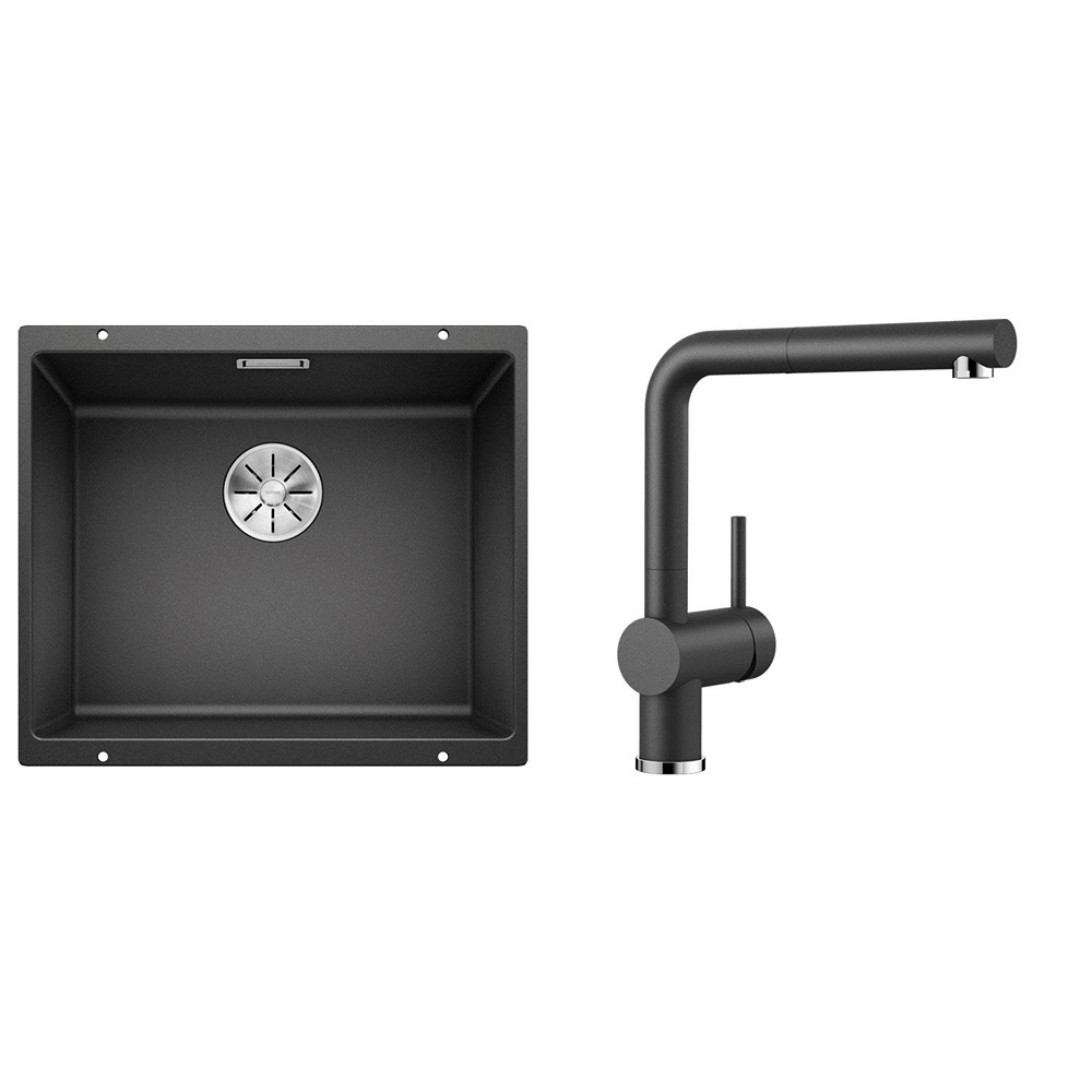 Blanco SUBLINE 500 U SILGRANIT PuraDur II Tezgahaltı Evye, LINUS-S Antrasit Evye Armatür Seti