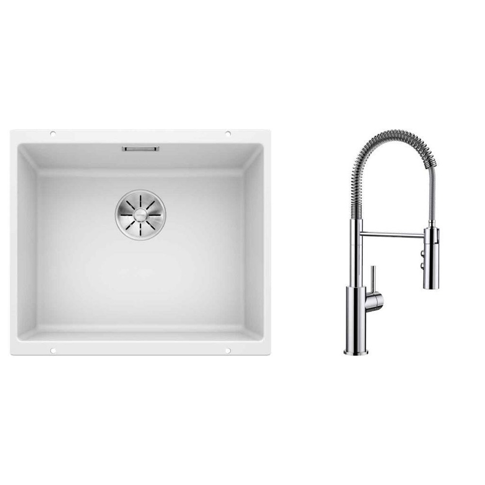 Blanco SUBLINE 500 U SILGRANIT PuraDur II Tezgahaltı Beyaz Evye, CATRIS-S Krom Evye Seti