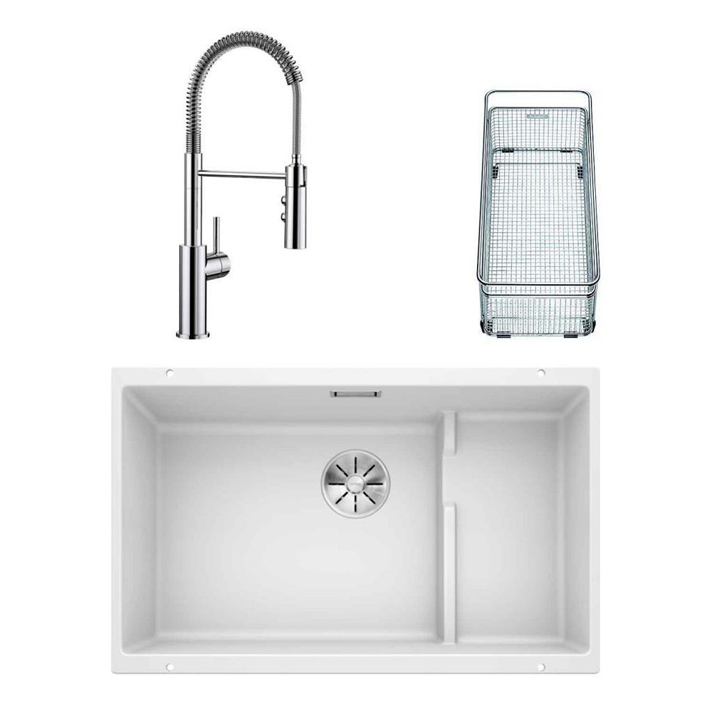 Blanco SUBLINE 700 U LEVEL SILGRANIT PuraDur II Tezgahaltı Beyaz Evye, CATRIS-S Krom Evye Seti