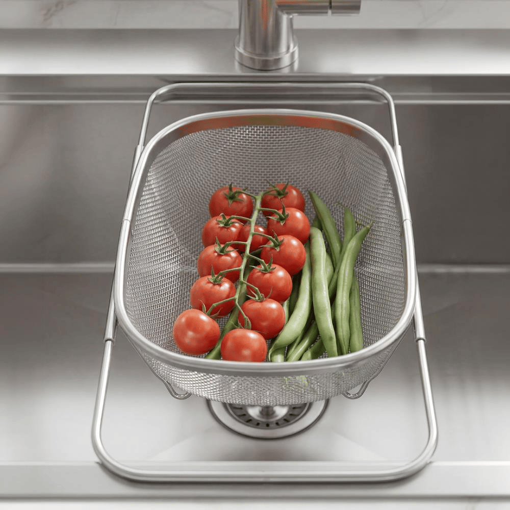 Evye içerisinde veya tezgâh üzerinde pratik şekilde kullanılabilir. Sebze ve meyvelerin yıkanması ve süzülmesi işlemlerini kolaylaştırarak mutfakta zaman kazandırır. Kompakt yapısı sayesinde yer kaplamaz ve düzenli bir kullanım sağlar.