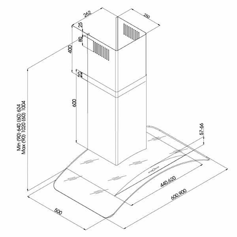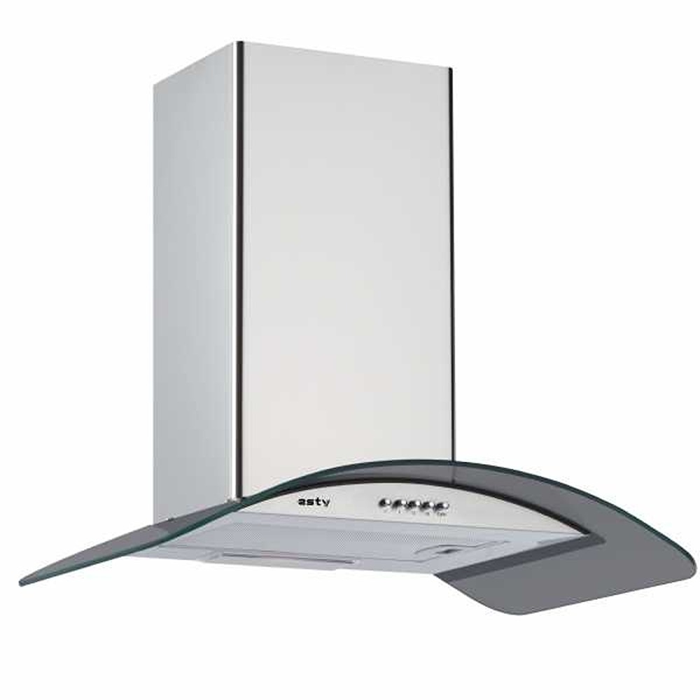 ESTY 3159 Dekoratif Camlı Duvar Tipi Davlumbaz, Inox, Füme Cam, 60cm