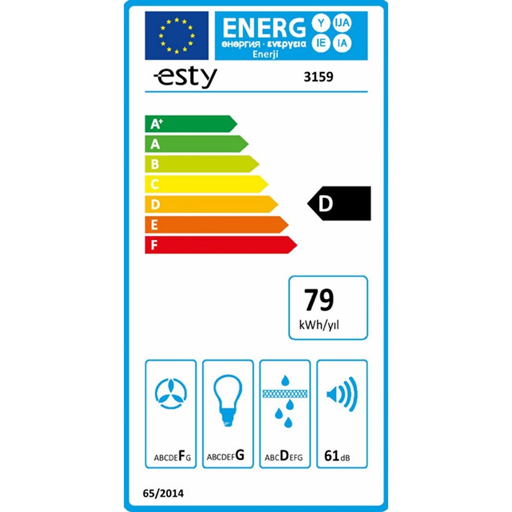 ESTY 3159 Camlı Duvar Tipi Davlumbaz, İnox, Füme Cam, 60 cm