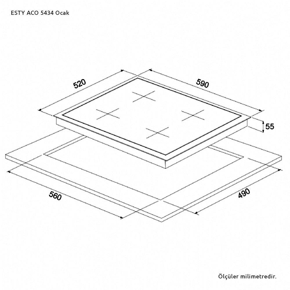 Esty ACO5434B01 Siyah Cam Ankastre Ocak, 59cm