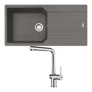Franke UBG 611-100 Granit Slate Grey Evye, Active Plus Doccia Slate Grey Armatür