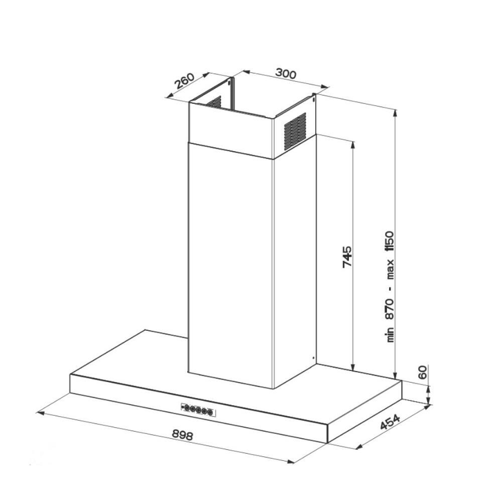 Geniş 90 cm gövde, büyük ocak alanlarında güçlü hava çekişi sağlar