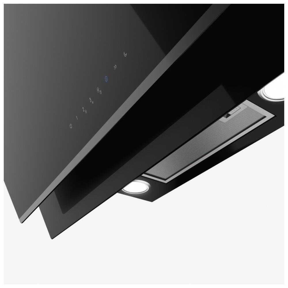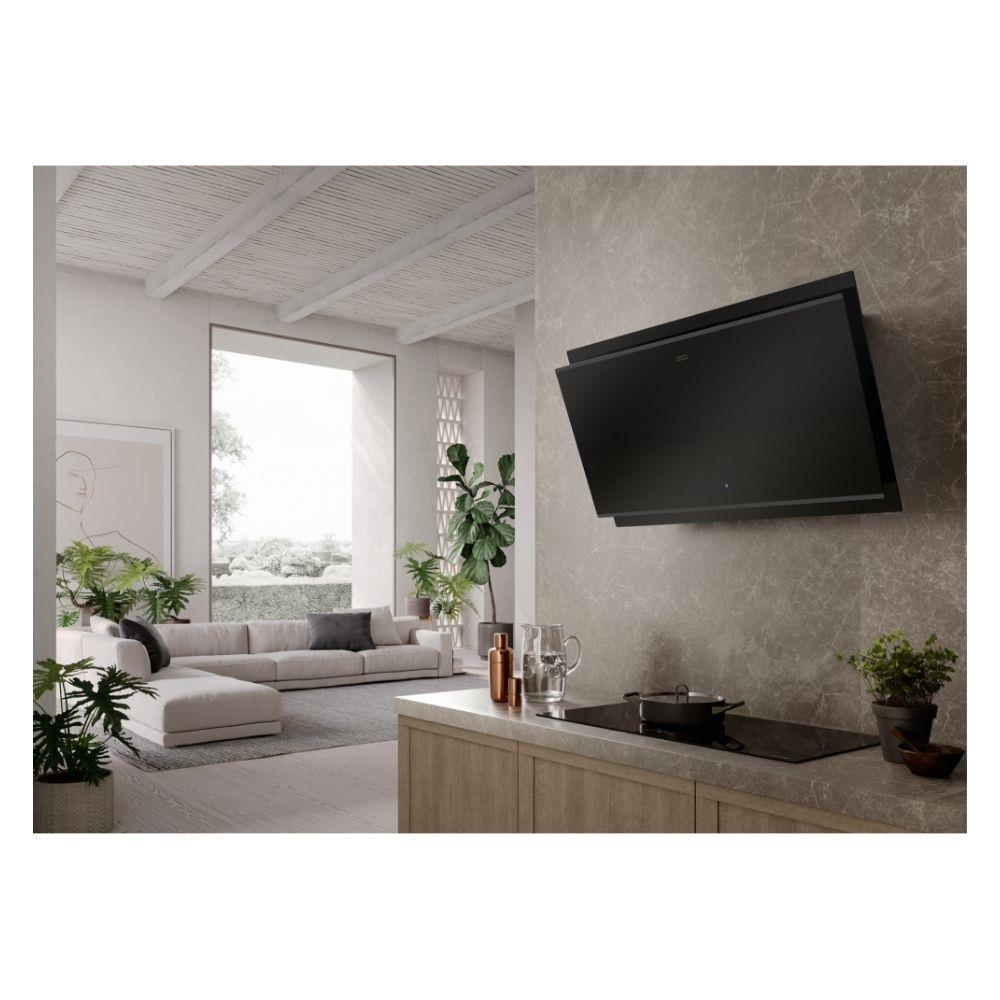 Bu eğik davlumbaz, parlak siyah yüzeyi ile mutfağınıza modern bir dokunuş katarken, 2 LED lambası ile 4000K aydınlatma sunar. Dokunmatik kontrol paneli ve zamanlı erteleme fonksiyonu ile kullanım kolaylığı sağlar. Alüminyum kaset filtresi ve karbon filtre ile etkili bir filtreleme sunarken, yıllık enerji tüketimi 43.5 kWh ve enerji verimliliği A+ olan bu davlumbaz, çevre dostu bir tercih sunar. 900 mm genişliği ve duvar montajıyla mutfağınıza mükemmel uyum sağlar.