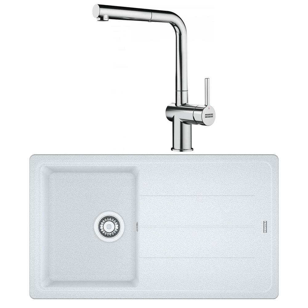 Franke BFG 611 Granit Bianco Evye ile Active Plus Doccia Spiralli Krom Armatür Seti