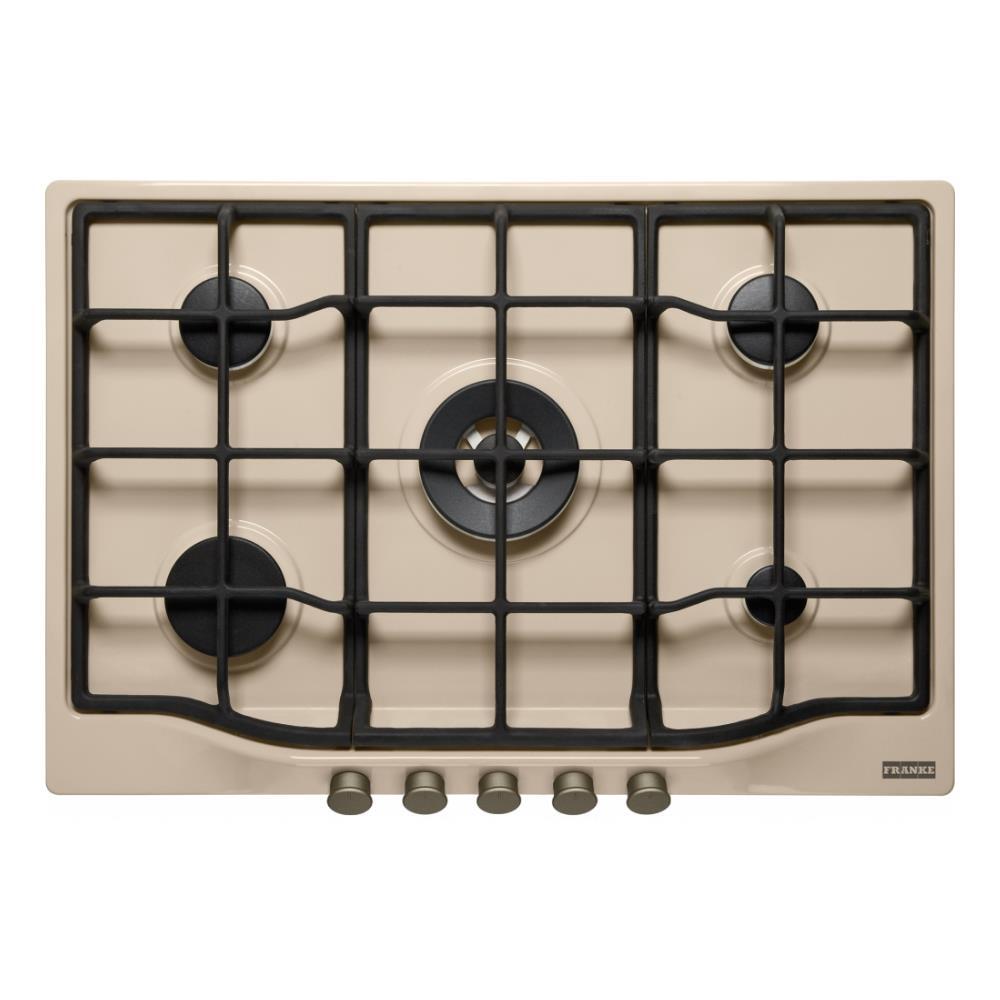 Franke Trendline FCH 755 4G TC OA C, 75 cm genişliği ve 5 gözlü gazlı pişirme alanı ile geniş aileler ve yoğun mutfak kullanımı için ideal bir çözümdür. Avena (krem/bej tonları) rengi ve dayanıklı emaye yüzeyi, mutfağınıza sıcak ve doğal bir hava katar.