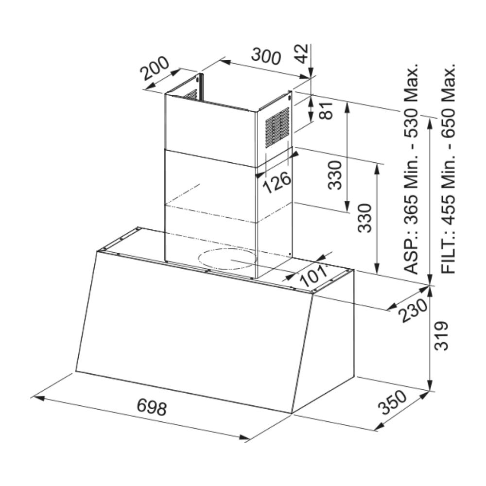 İsteğe bağlı olarak karbon filtre (112.0016.755) takılabilir, bu sayede hava çıkışı olmayan mutfaklarda da kullanım imkânı sağlar.