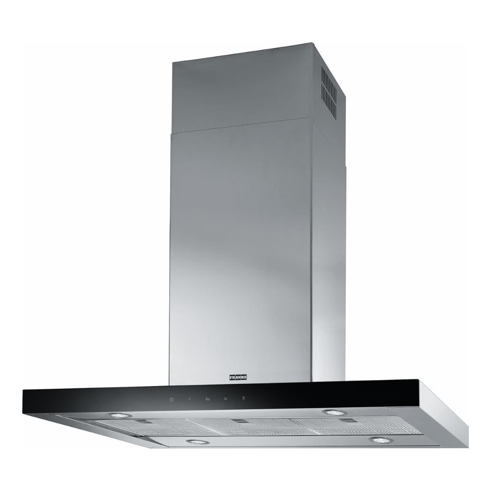 Franke Mythos 90 cm ada davlumbaz, şık paslanmaz çelik ve siyah cam tasarımı ile modern mutfak adalarına zarif bir dokunuş sunar. T tipi tasarımı ve güçlü motoru sayesinde yoğun buhar ve yemek kokularını hızlı ve etkili bir şekilde temizler.