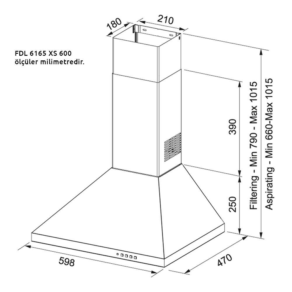 Modern mutfakların kalbinde yer almak üzere tasarlanan Franke FDL 6165 XS/600 davlumbaz; paslanmaz çelik yüzeyi, minimal çizgileri ve sessiz çalışma karakteristiğiyle öne çıkıyor. 60 cm genişliği sayesinde standart mutfak üniteleri ile tam uyum sunarken, dekoratif duvar tipi tasarımı ile estetik algıyı üst düzeye taşıyor.