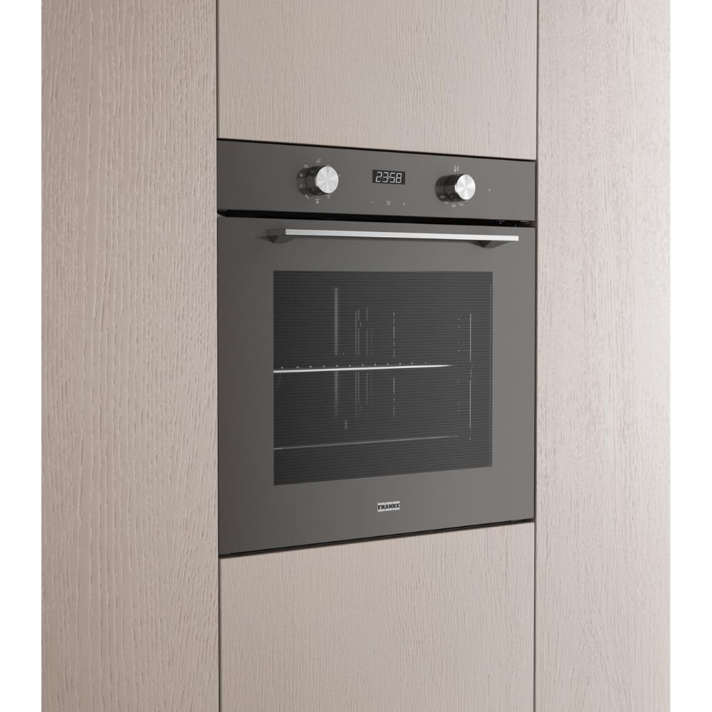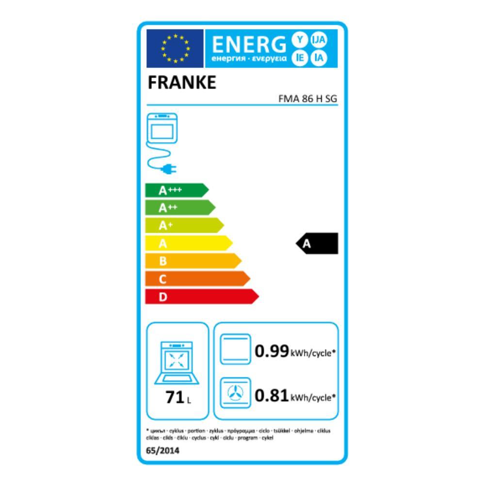 Franke Maris FMA 86 H SG, 71 litrelik geniş iç hacme sahip, 8 programlı ankastre fırındır. Slate Grey (ardıvaz grisi) rengi ve modern dijital ekranı ile mutfaklara şıklık katar. Yavaş kapanan kapısı, programlanabilir zamanlayıcısı ve buharla kolay temizleme özelliğiyle pratik ve konforlu bir kullanım sunar.
