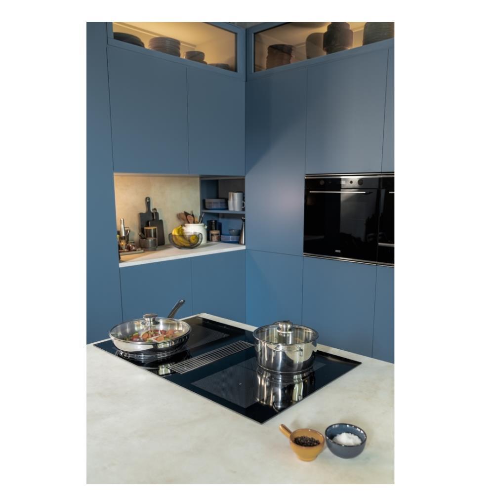Entegre davlumbaz sistemi, buhar ve kokuyu kaynağında çekerek pişirme sırasında mutfağınızda ferahlık sağlar. 600 m³/h aspirasyon debisi, dokunmatik hız kontrolü ve Intensive Speed fonksiyonu ile güçlü performans sunarken, karbon filtre kiti ürün ile birlikte gelir ve kurulum kolaylığı sağlar.