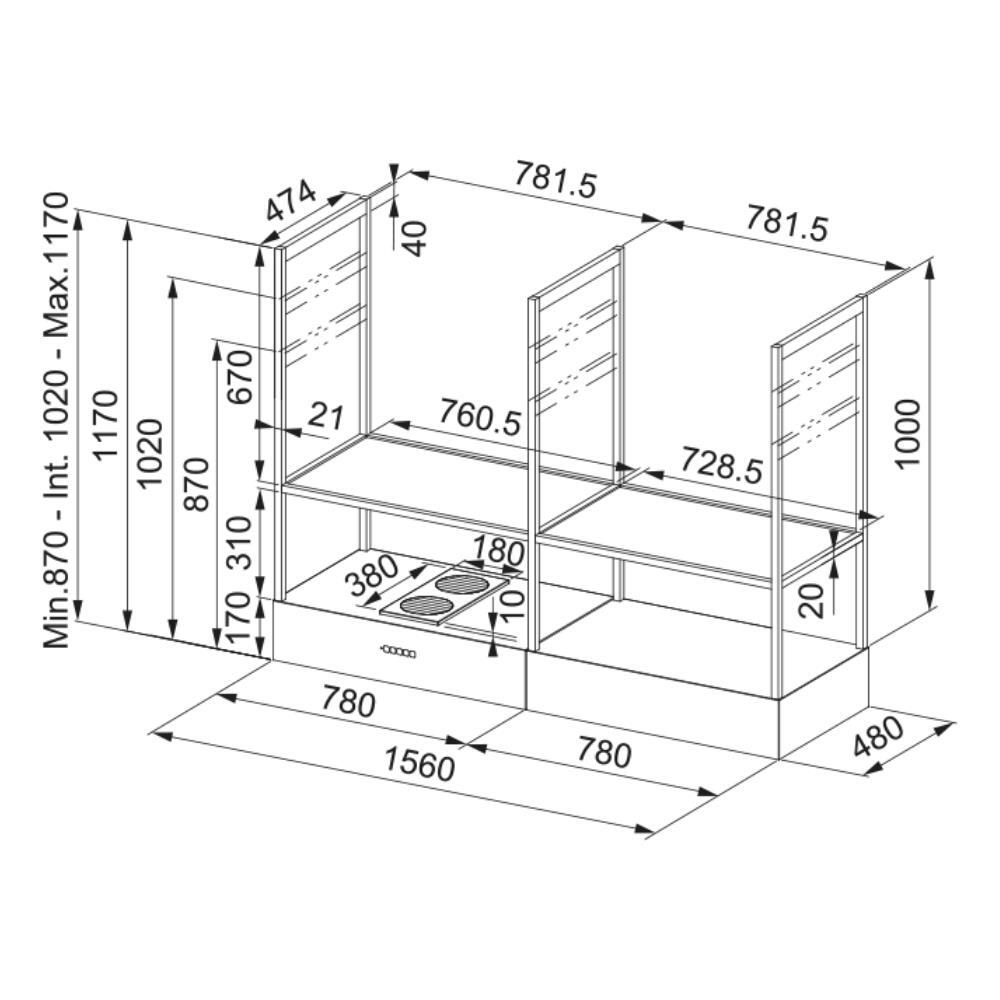 Genişlik: 156 cm, büyük ada mutfakları için ideal boyut.