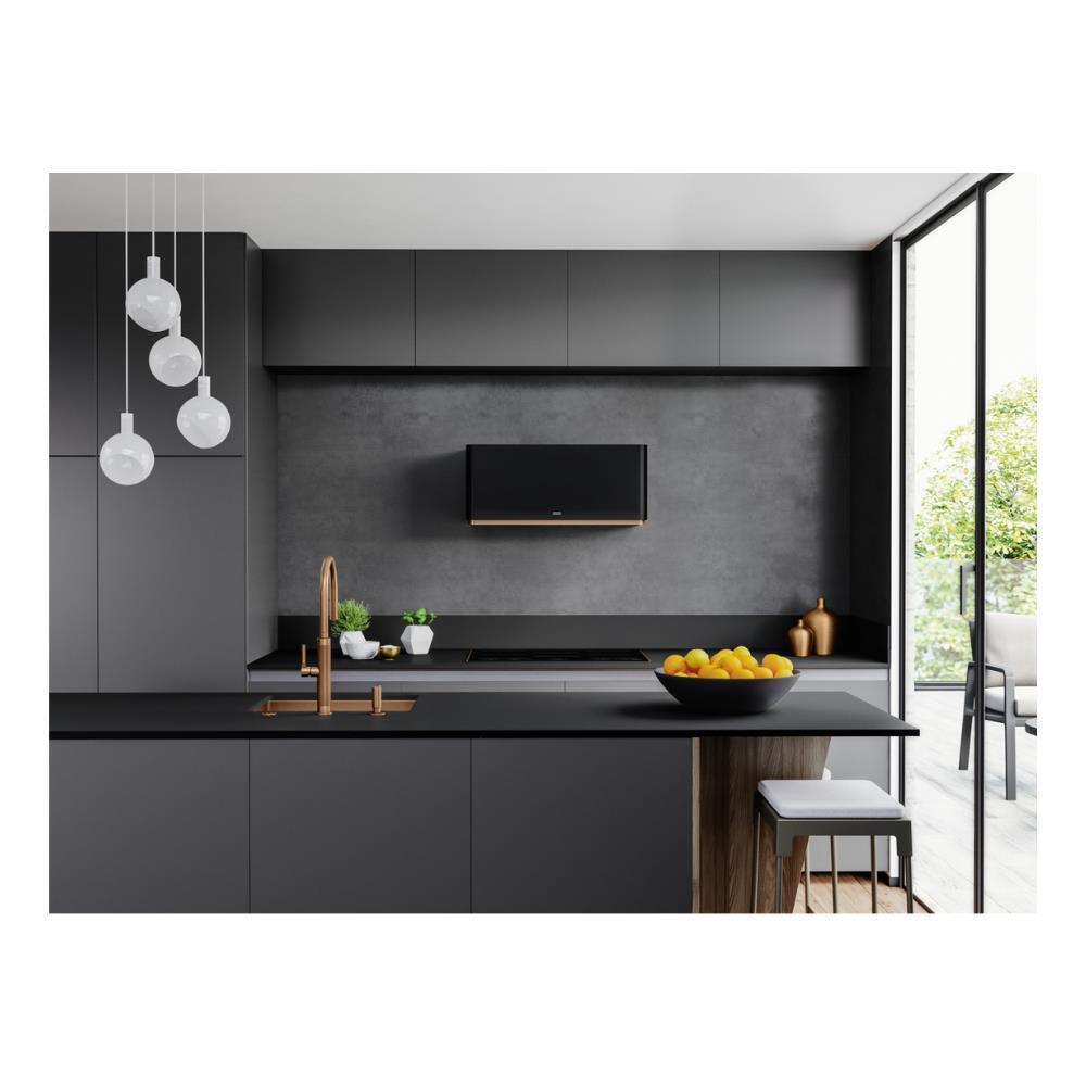 Franke Mythos Masterpiece 80 cm duvar tipi davlumbaz; modern, şık ve yüksek performanslı yapısıyla mutfaklarda hem tasarım hem de fonksiyonellik arayan kullanıcılar için özel olarak geliştirilmiştir. Mat siyah yüzey ve Copper detaylarıyla premium bir görünüm sunarken, güçlü motoru ve gelişmiş filtre sistemleriyle mutfakta temiz hava sirkülasyonu sağlar. K-LINK teknolojisi sayesinde Franke ocaklarla kablosuz iletişim kurarak otomatik hız ayarı yapabilir.