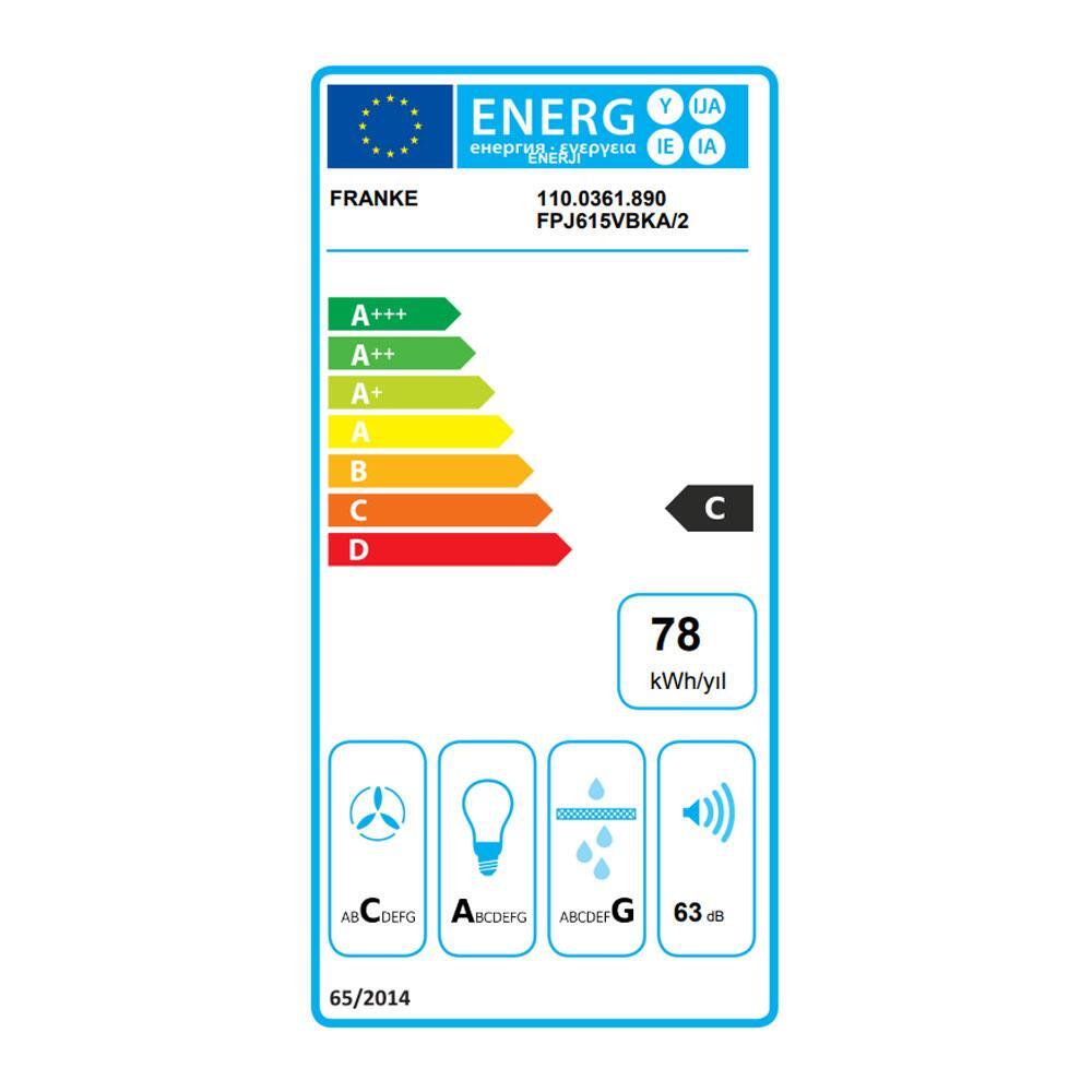 Franke FPJ 615 V BK A 600 Davlumbaz, 60 cm, Siyah Cam, Duvara montaj, 560 m3/h, Dokunmatik panel