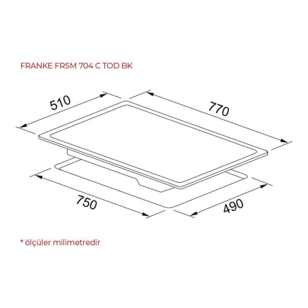 Franke FRSM 704 C TOD BK ankastre elektrikli ocak; dokunmatik kontrol paneli ve dört elektrikli göz ile işlevselliği ve şıklığı bir araya getirir. 9 kademeli ısı ayarı, timer, sıcak yüzey göstergesi ve çocuk kilidi gibi özelliklerle güvenli kullanım sunar. 770x510 mm boyutlarındaki ocak, 750x490 mm montaj alanına ve minimum 80 cm genişlikte alt dolaba uygundur. Çift halkalı oval brülör yapısı ile çeşitli pişirme ihtiyaçlarına ideal çözümdür.