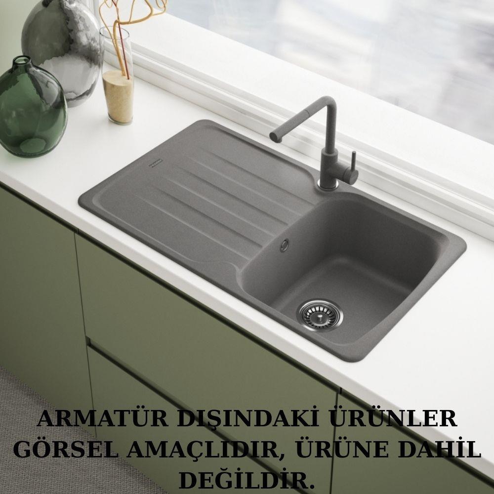 Stone Grey rengi granit kaplama dış yüzeyi ile stone grey rengi Franke granit eviyeler ile tam uyumludur,