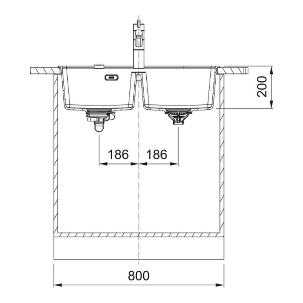 Maris, Tezgah üstü, 760x510 mm mm, matt black, iki gözlü granit eviye