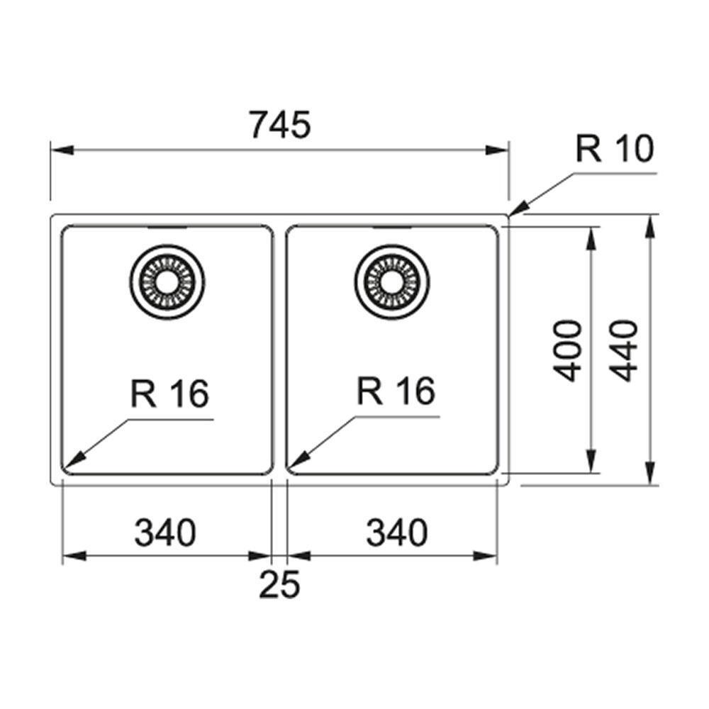 Franke Maris MRX 120-34-34 Inox, 2 hazne, Tezgah altı evye