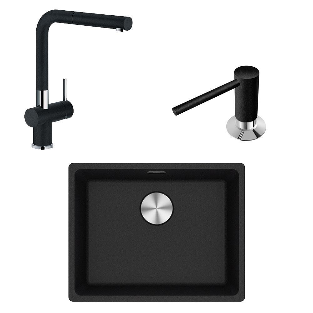 Franke MRG 110-52 Üçlü Set, Nero (siyah) renk, Evye + Armatür + Sıvı Sabunluk