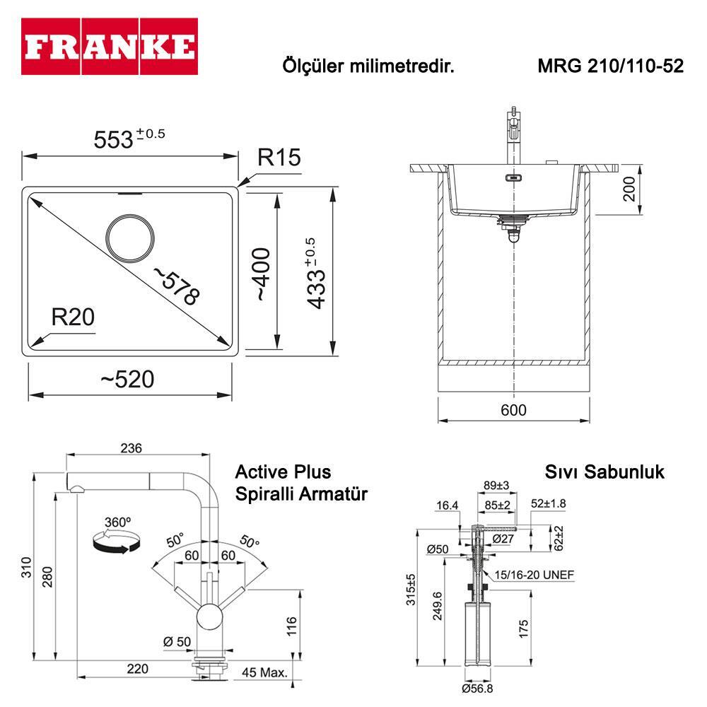 Franke MRG 210 / 110-52 Üçlü Set, Oyster renk