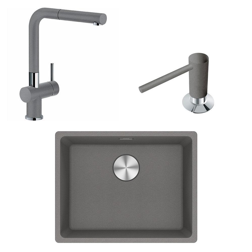 Franke MRG 210 / 110-52 Üçlü Set, Stone Grey renk, Evye + Armatür + Sıvı Sabunluk
