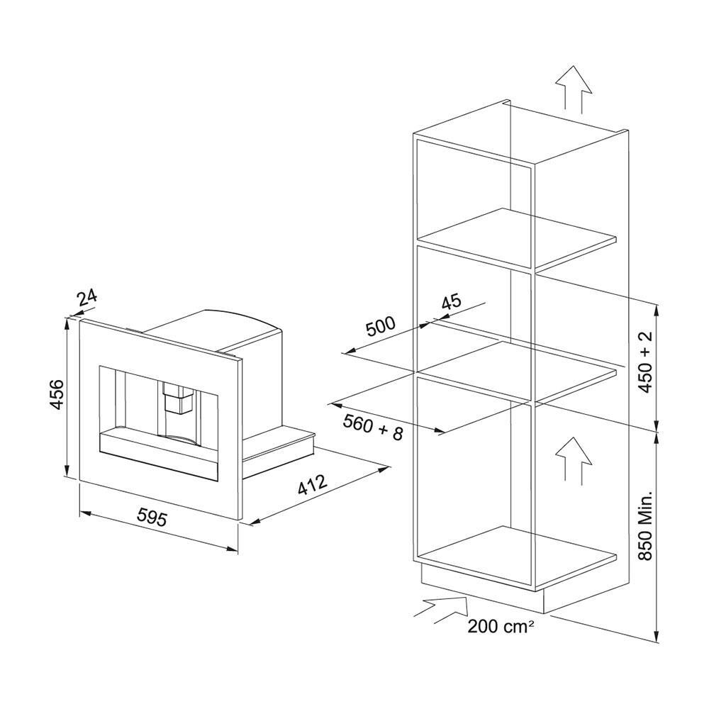 Genişlik 595 mm, Derinlik 412 mm, Yükseklik 595 mm, 595 mm, Yükseklik 595 mm, Derinlik 550 mm,