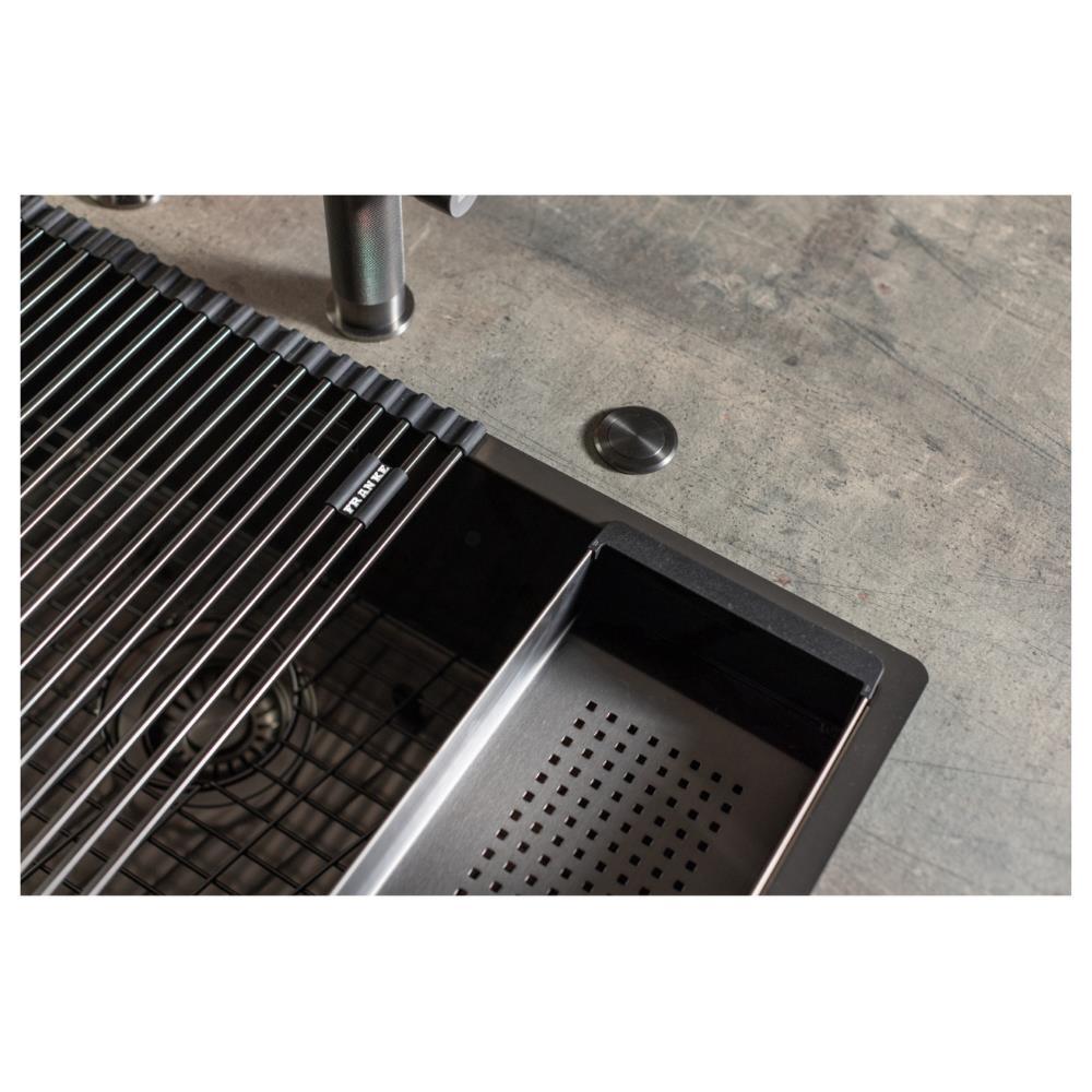 Mutfakta hem şıklığı hem de fonksiyonelliği bir arada sunan Franke Mythos Çelik Esnek Süzgeç Antrasit, evyeniz için tasarlanmış çok yönlü bir aksesuar. Paslanmaz çelik çubuklar ve siyah neopren bağlantılar sayesinde dayanıklı ve modern bir görünüm sağlar.
