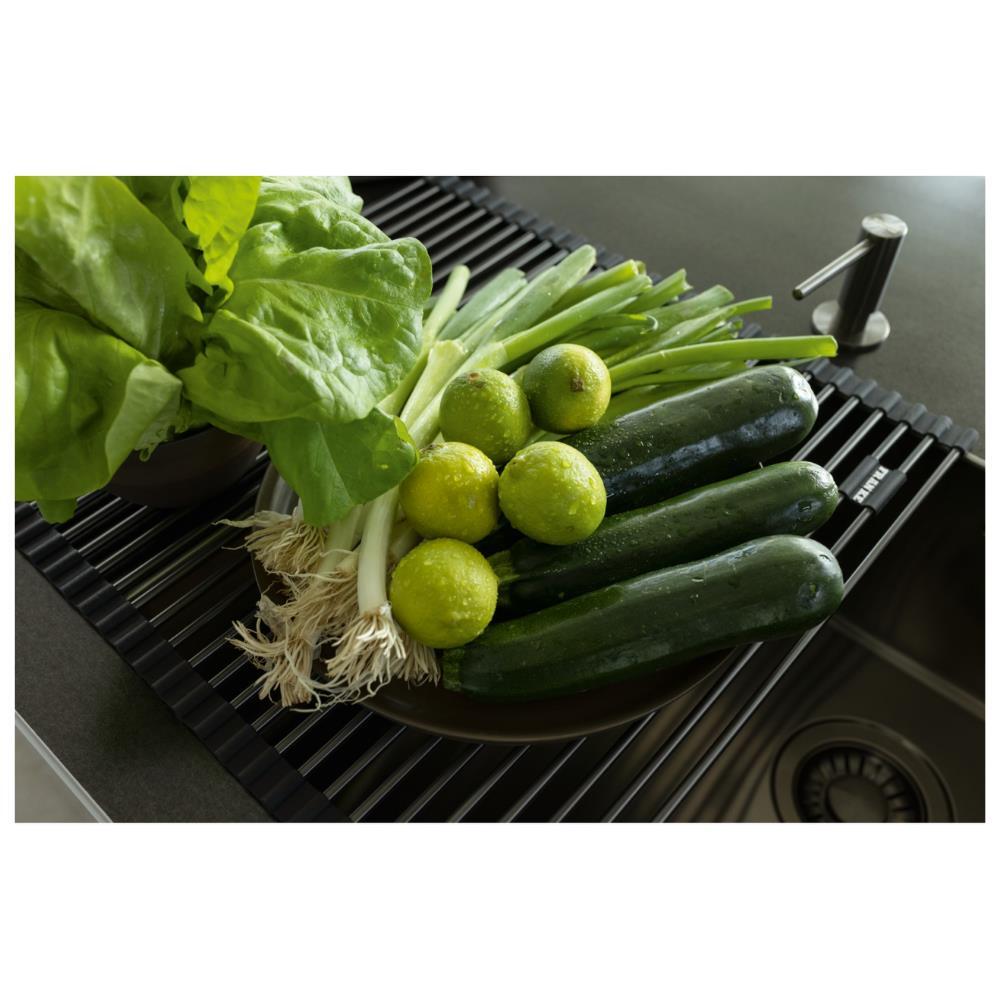 Pratik Tasarım: Kauçuk kenar sayesinde evye üzerinde sabit durur, kolayca rulo yapılıp saklanabilir.