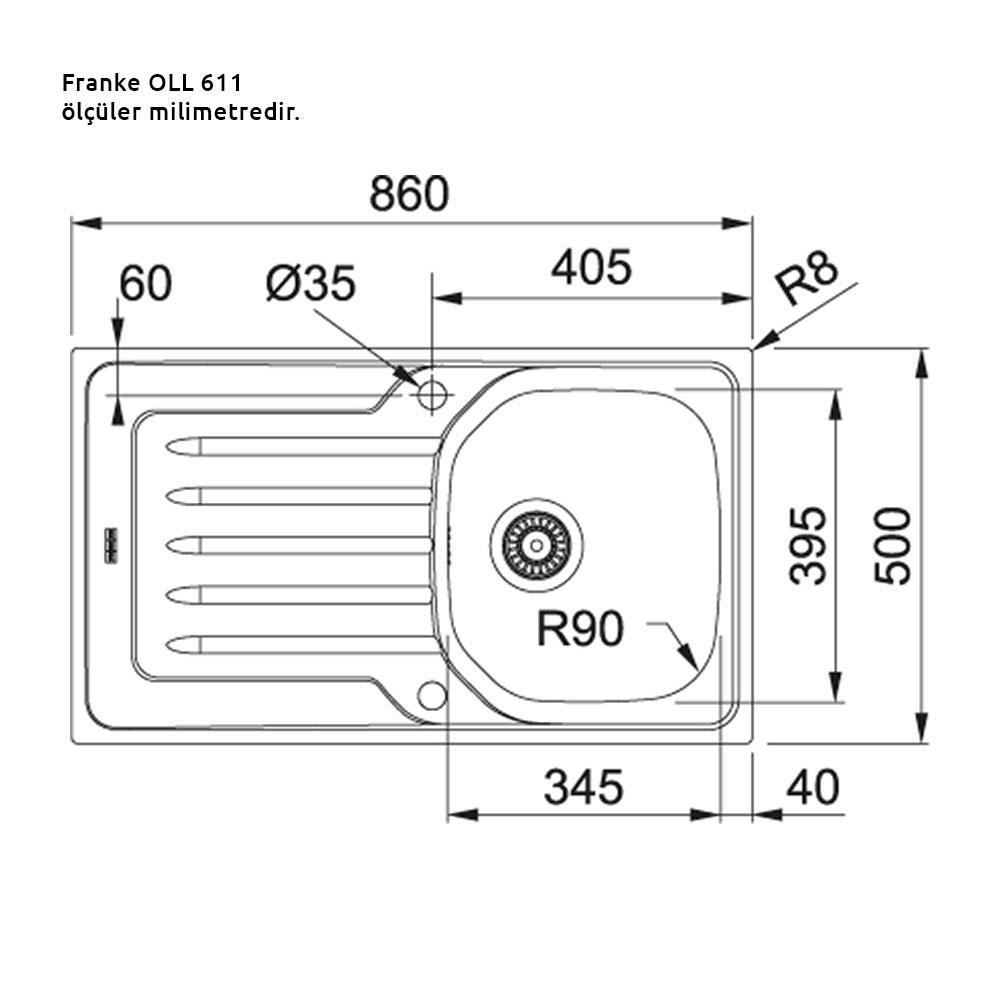 Franke OLL 611 Onda Line Çelik Evye, Sol Damlalıklı, Dekorlu, 1 Göz,