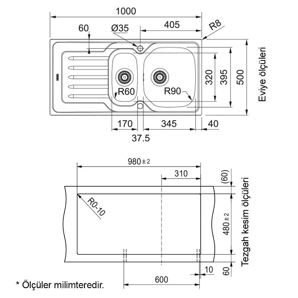 Kolay Kurulum: Tezgah üstü montajı sayesinde hızlı ve pratik bir şekilde kurulabilir. Minimum 60 cm alt dolap ölçüsü ile uyumludur.