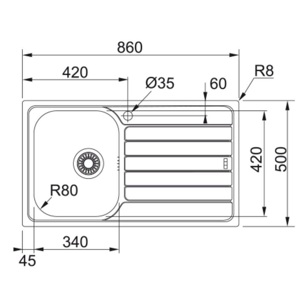 Franke SKX 611-86 Paslanmaz Çelik Evye, Sağ damlalıklı, 86x50cm