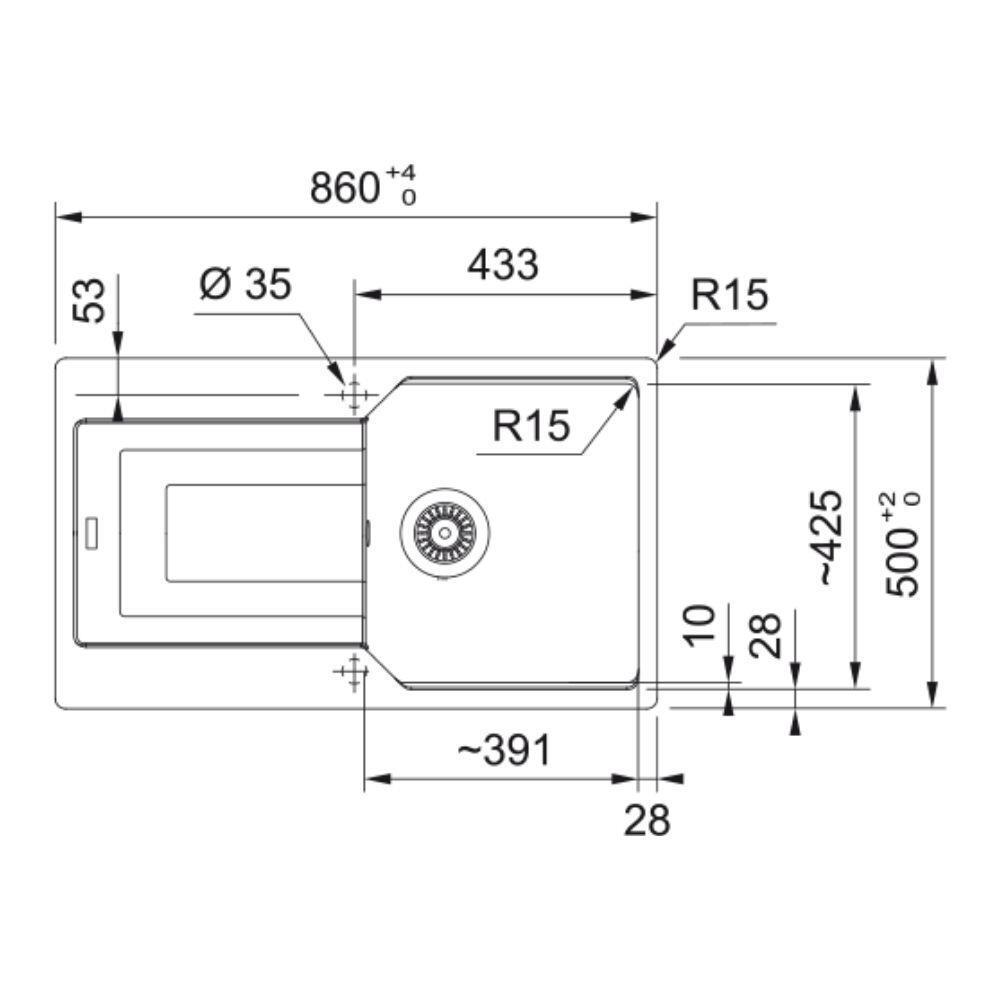 Franke Urban UBG 611-86 Granit Evye, Bianco, Tezgah üstü, Tek hazne, Damlalıklı, 86x50 cm