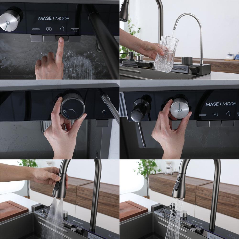 5 YIL Garantili, Çok fonksiyonlu, Dijital ısı göstergeli, Spiralli armatürlü, Teknolojik Evye Seti,