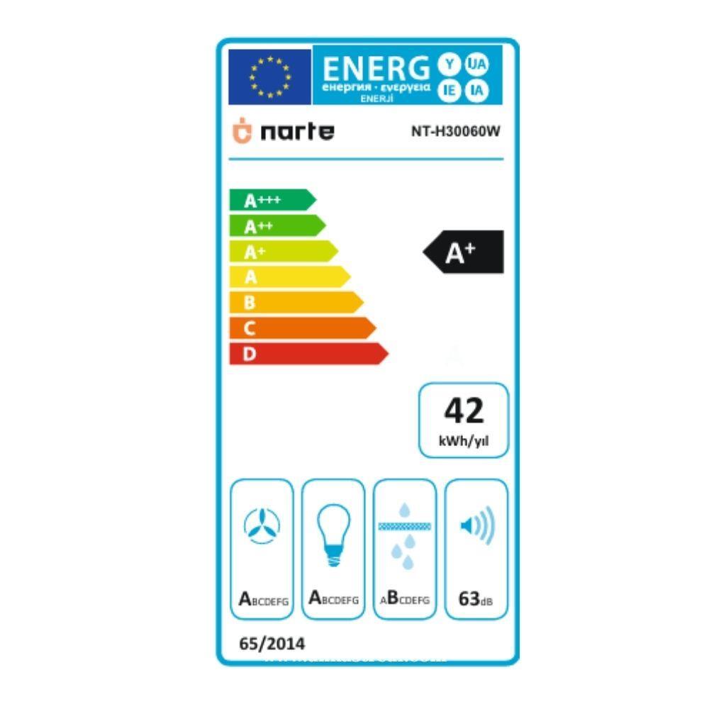 Zarif tasarımı ve üstün performansıyla Narte H30060W beyaz davlumbaz, mutfağınıza hem şıklık hem de ferahlık kazandırır.