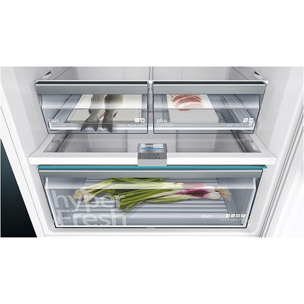 Ayarlanabilir nem kontrol mekanizmasına sahip sürgülü hyperFresh plus çekmecesi sayesinde meyve ve sebzeler en uygun nem oranında 2 katına kadar daha uzun süre taze kalırlar.