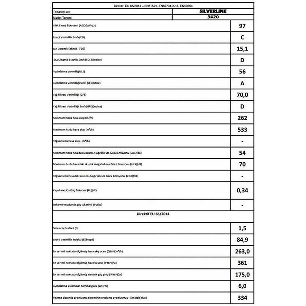 Silverline 3420 Classy Beyaz Cam Davlumbaz 60cm Yatık Duvar Tipi