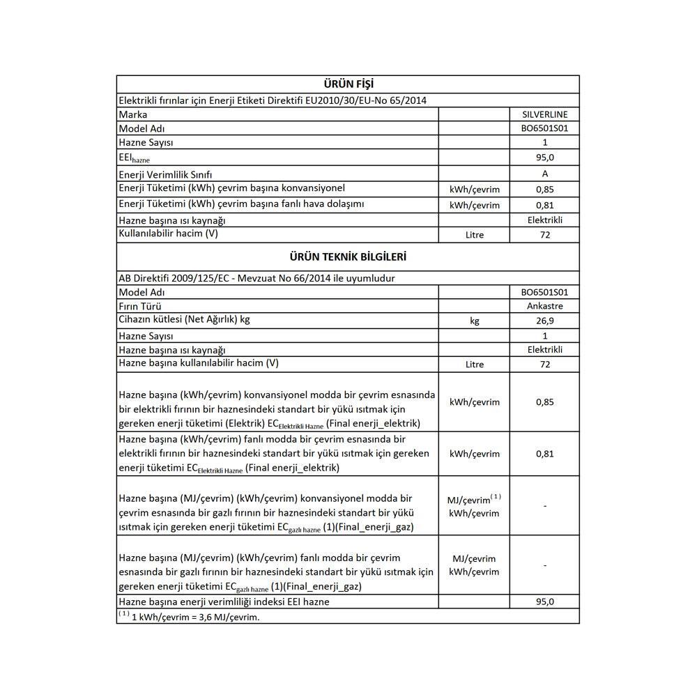 Silverline BO6501S01 Ankastre Fırın , Gri