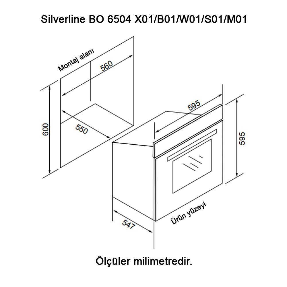Montaj Ölçüsü : Genişlik 560 mm, Derinlik 550 mm, Yükseklik 600 mm,