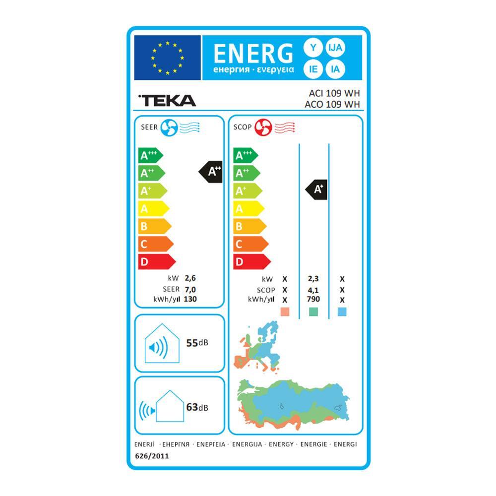 Teka ACI 109 WH Duvar Tipi Inverter Klima | 9000 BTU A++ Enerji Sınıfı | 12-18 m² odalar için, Dış ünite dahil
