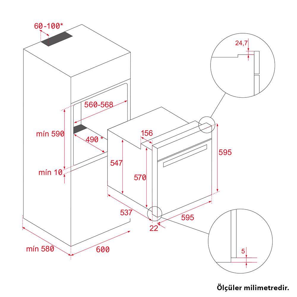 Ürün Ölçüsü ( Y x G x D ) 595 x 595 x 559 mm
