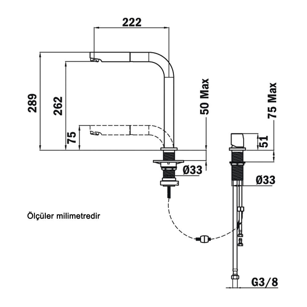 Bu armatürün kullanımı için tezgah veya evyenizin üzerinde iki adet 35mm montaj yuvası olmalıdır.